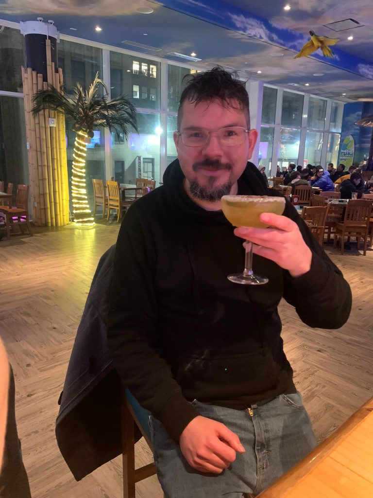 On this day, I had tried spiking my mohawk, only for the rain to destroy it. But don’t I look happy and at home in Margaritaville?